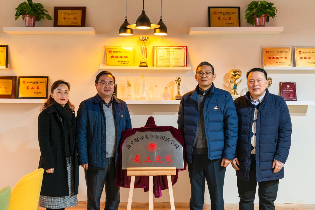 12月26日上午,我院“教工之家”揭牌仪式在德正楼304隆重举行。校工会主席许文彪、副主席葛雷、综合办公室主任冷小逵应邀出席,我院党委书记刘浩、院长孙勇彬、副院长邵怡、部分教职工参加了揭牌仪式。仪式由学院党委副书记刘英华主持。