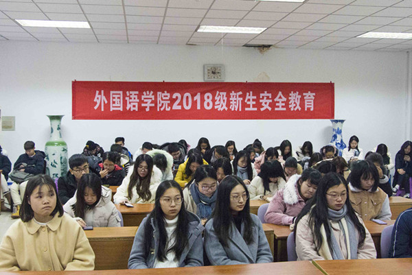 2018年12月6日,WilliamHill中文保卫处处长唐福元给我院学生进行安全知识普及,我院党委书记刘浩、学工办主任、团委书记潘华以及外院全体18级本科生参加了本次讲座。
