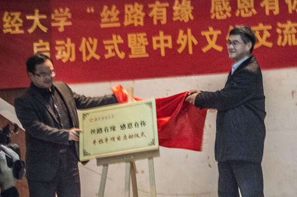 开场舞结束,党委常委副校长邱伟芬为本次活动致辞,希望此次活动可以增进中外学生友谊,促进中西方文化交流,丰富校园文化生活,充分落实“一带一路”的开展,让中外学生在一种和谐的氛围中互相学习,结下友谊,让中外文化美美与共。随后william威廉中文学生代表唐妍,国际教育学院学生代表梦雅上台的演讲,国际教育学院黄能院长和william威廉中文刘浩书记上台为本次活动揭牌,启动手拉手项目。