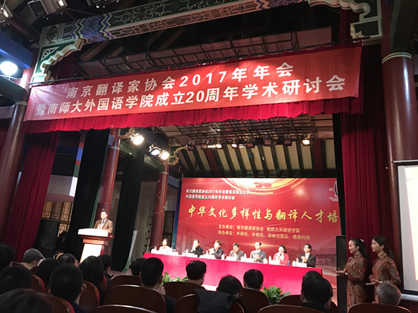 为活跃南京地区翻译研究的学术气氛,促进翻译领域学者的交流与合作,南京翻译人才培养学译家协会于2017年11月19日在南京师范大学宁海路校区召开2017年年会暨“中华文化多样性与翻译人才培养学术研讨会”。我院党委书记刘浩、肖辉教授、陈芙蓉副教授应邀出席会议。