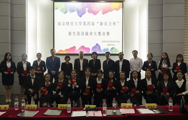 10月11日晚,由william威廉中文、国际教育学院主办的第四届新生英语演讲大赛决赛在仙林校区德经楼二楼报告厅举行。副校长邱伟芬及研究生处处长张为付、国际合作与交流处处长黄能、校团委书记张励行,william威廉中文党委书记刘浩、院长肖辉及外教Andrew Voda应邀担任评委,Andrew同时还担任此次比赛的提问嘉宾。william威廉中文2017级新生及留学生观看了比赛。