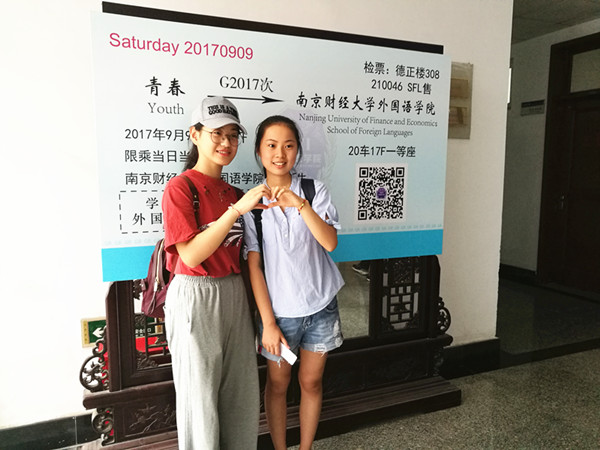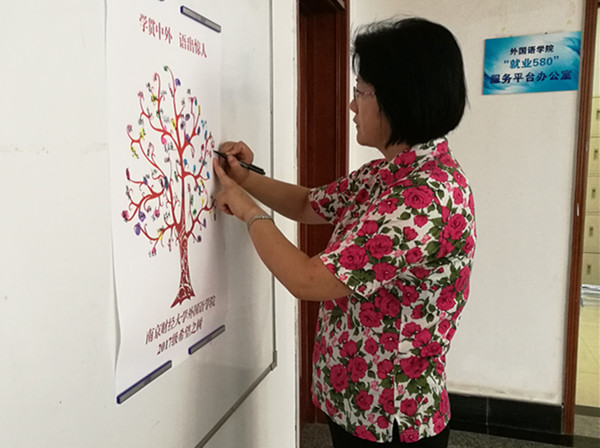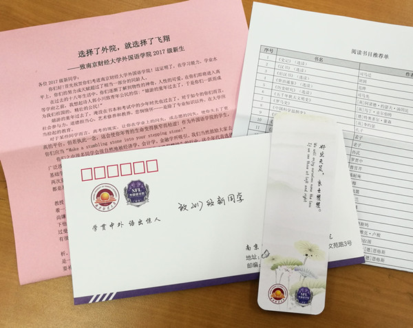 在迎新现场,学院特意为新生准备了四重礼,祝福新生开启人生新阶段。第一重礼是学院精心布置的富有创意的大型火车票,上一站青春,下一站南财外院,寓意在最美的青春时节,在南财外院开启人生新篇章。第二重礼是学院在迎新现场引导全体2017级新生“栽种”希望之树,在希望之树的“栽种点”按下全体新生的手纹印,绘制成一棵希望之树,这棵“希望之树”将悬挂在学院走廊,陪伴全体2017级新生度过他们宝贵的四年时光,见证学子的成长。第三重礼是学院送给新生的一封信,附上阅读推荐书目和学长学姐精心设计的印有中英文双语中国传统诗词的书签,引导新生读书开启未来,学习外语更不能丢掉传统文化。第四重礼是在外院爱心墙前组织为新生及家长拍摄全家福的活动,并倡议新生“爱要大声说出来”,引导新生向父母大声说出“我爱你”,纪念大学入学这一特殊的时刻。来自江苏教育电视台的记者也在现场记录下了这一温馨画面,并以《同学,开学见面“四重礼”请收好》为题在9月9日当天的《江苏教育新闻》中播出,荔枝新闻APP也同步刊发。