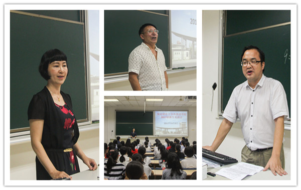 晚上六点半,李慕原副书记在德正楼117教室为全体新生做安全教育。晚七时,学院在17教室举办2017级新生见面会。全体院领导、系主任、教授代表出席此次见面会。见面会由党委副书记李慕原主持。与会的院领导、老师先后讲话。党委书记刘浩对同学们的到来表示祝贺,并从学习、生活等各个方面给予新生建议。他希望同学们能够认真对待即将到来的大学生活,在大学期间磨练意志、独立自主、学会感恩。院长肖辉用中英文结合的表达介绍了学院的基本情况以及在教学、科研、人才培养方面的成果,鼓励新生努力学习,珍惜大学时光。张高远教授、法语系副主任顾晓燕、英语系负责人胡阳分别从人文精神的培养,学习习惯的养成等方面与新生做了交流,鼓励新生们积极投入到全新的大学生活。(胡宇恺、李慕原)