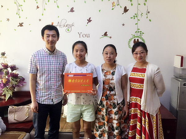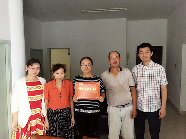 7月28日,我校招生办主任衣琳、william威廉中文党委副书记李慕原、教务科研办主任潘华一行来到江苏无锡、江阴为william威廉中文2017级新生倪星愉、吴荣慧同学送去了录取通知书。
