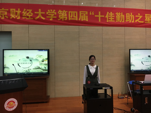本次活动共分为三个阶段,经过激烈的预赛和复赛,最终有15位同学脱颖而出,进入了本次活动的决赛。他们都是学校勤工助学岗位上的好榜样。决赛现场,他们向评委和观众讲述着自己的勤工助学经历和对勤工助学的看法并带来了精彩的才艺展示,同时以表演的形式创意再现自己的工作情景。我院英语1501班张瑜同学认真负责的工作态度和乐于奉献的服务精神打动了评委,在才艺展示环节,她的一曲侗歌更是给大家留下了深刻的印象,最终荣获WilliamHill中文“十佳勤助之星”称号。
