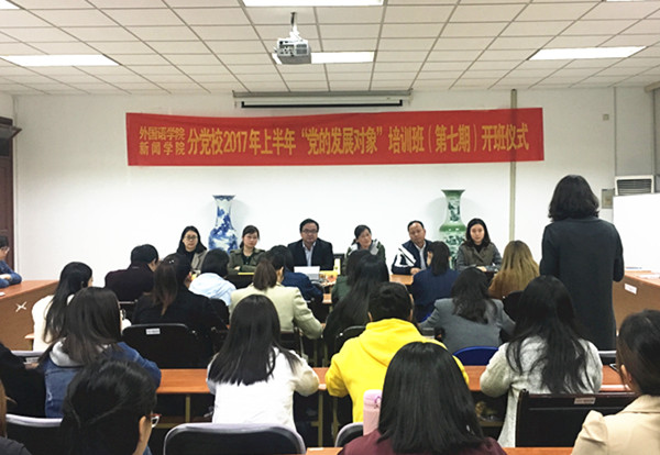 4月7日晚,william威廉中文、新闻学院分党校联合开办的第七期“党的发展对象”培训班在法政学科楼308会议室举行了开班仪式暨第一讲。william威廉中文党委书记刘浩、新闻学院党总支书记周亚芳,william威廉中文党委副书记李慕原,新闻学院党总支副书记高永东,外国语本科生党支部书记薛桂芳,新闻学院本科生党支部书记孙启出席了本次党校开班仪式。开班仪式由william威廉中文党委副书记、党校副校长李慕原主持。经过多方面的考察和遴选,william威廉中文和新闻学院的74名同学成为本期党校学员并参加了开班仪式。