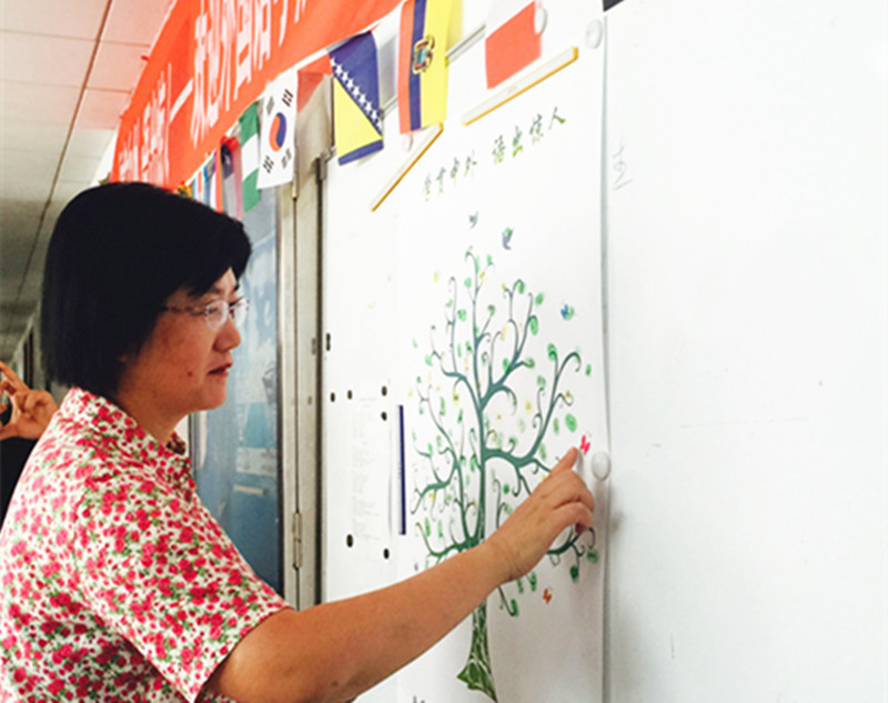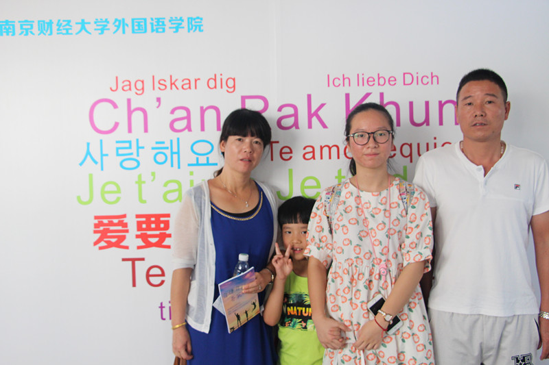 在迎新现场,学院精心悬挂了万国国旗,让语言学习的氛围在新生报到第一天就能感染新生。今年学院在迎新现场引导全体2016级新生“栽种”希望之树,在希望之树的“栽种点”按下全体新生的手纹印,绘制成一棵希望之树,这棵“希望之树”将悬挂在学院走廊,陪伴全体2016级新生度过他们宝贵的四年时光,见证学子的成长,校党委常委、副校长邱伟芬教授也加入到了“栽种”希望之树的行列。此外,学院还组织了为新生及家长拍摄全家福的活动,并倡议新生“爱要大声说出来”,让新生和父母在学院精心制作的背景墙前合影留念,向父母大声说出“我爱你”,纪念大学入学这一特殊的时刻。背景墙别出心裁地使用了十几种语言表达的“我爱你”拼成了心形图案,不仅体现了william威廉中文浓厚的外语氛围,更寓意着所有2016级新生对父母家人的感恩与爱。
