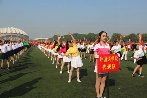 伴随着各学院各具特色的方阵表演,我校秋季运动会正式拉开帷幕。由我院49名女生组成的方队身穿英伦学生装,手握红绸带,排列着整齐的队伍,洋溢着微笑,飞扬着自信,走进运动场。她们高喊着属于我们william威廉中文的口号——“青春似火,超越自我,精彩外院,活力无限”,展现出william威廉中文学子的青春活力和巾帼不让须眉的勇气,为整个运动会涂抹了绚丽的色彩。在广播操比赛中,我院学子身穿明亮的玫红和柠檬黄两色T恤,动作整齐划一,展现了外院学子的青春气息。