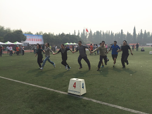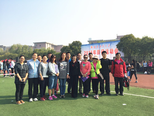 尤其值得一提的是我院教职工也积极地参与到运动会中,并获得了全校教工团体第八名的佳绩。我院老师积极参与“滚雪球”,“运量过桥”,“投篮”等多个趣味运动项目。同学们也用心呐喊,为我院的老师们加油助威。