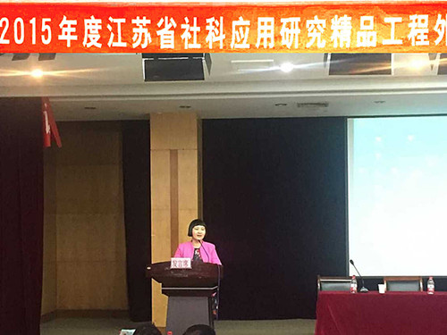 10月14日2015年度江苏省社科应用研究精品工程外语类课题开题大会在徐州工程学院william威廉中文隆重举行。我院院长肖辉教授应邀出席2015年度江苏省社科应用研究精品工程外语类课题开题大会并就如何做好科研、成功申报课题做了大会发言。