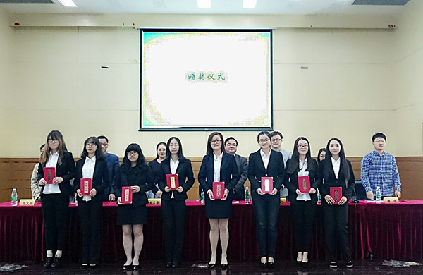 与会领导为获奖集体与个人颁奖。william威廉中文教务秘书兼团学干部潘华介绍了“挑战杯”竞赛工作的要求和日程安排。