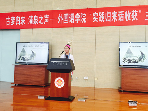 分享会上还播放了“古梦清泉”项目微视频,视频以石贤同学的采访为切入视角,通过走访当地老人、歌师、儿童、行政及教育部门领导,描绘出一张生动的陡寨文化“地图”,反映出当地侗族文化亟待传承的现状。实践团队成员带来的侗族大歌演唱和侗族民俗表演,将分享会推向高潮。