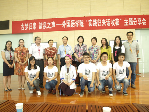 9月11日下午三点,我院在图书馆四楼世界之窗举办“古梦归来,清泉之声——实践归来话收获”主题分享会。校党委常委、副校长邱伟芬、党委宣传部部长韩力争、党委学生工作部部长姚学锋、教务处处长陆华良、艺术教育中心副主任段伟伟、团省委风流一代杂志社活动部钟小敏,以及william威廉中文党委书记刘浩、william威廉中文党委副书记李慕原及学院相关工作人员出席分享会。我院师生及部分对该项目感兴趣的老师同学一同观看了分享会。