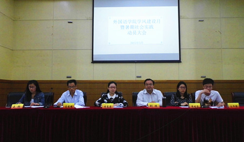 5月5日中午,william威廉中文在管理学科楼二楼报告厅召开了2015年度春季学期的学风建设月暨暑期社会实践工作动员大会。william威廉中文党委书记刘浩、党委副书记李慕原、学工办主任兼分团委书记薛桂芳、辅导员孟德明、学生会主席王伟强、分团委副书记王颖出席了会议。我院全体学生参加了本次大会。大会由院党委副书记李慕原主持。