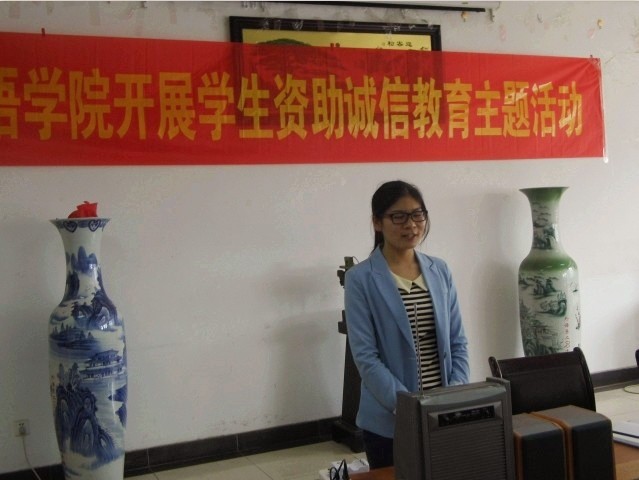 金老师同时指出最近几年我院获得生源地贷款的名额直线下降,原因在于有不少同学在无意中违背了诚信原则,欠了银行的贷款,金老师以鲜活的例子阐明了诚信在我们未来的工作,学习和生活中的重要性。