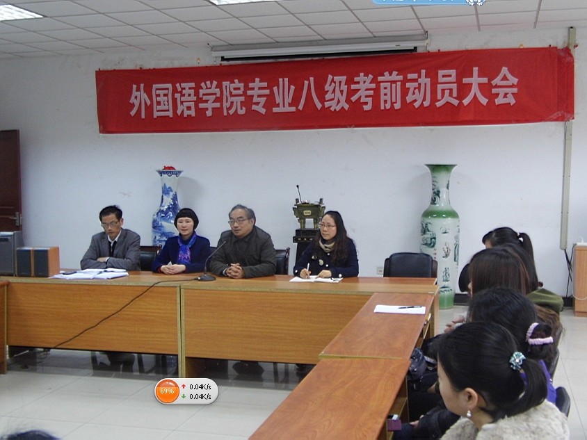 王院长在会上着重强调了两点,首先,讲了英语专业学生参加全国英语专业八级考试的重要性,在考试中,认真审题,细心做题,严格遵守考场纪律,以考出最佳成绩,再创辉煌。其次就是毕业班同学必须重视毕业论文的撰写,按指导老师的要求,撰写出优秀的毕业论文。