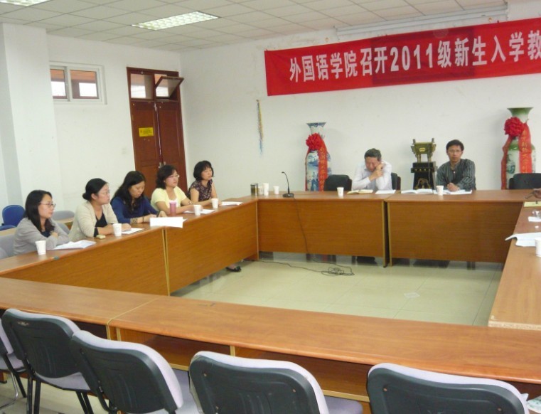 10月9日下午3时,许承明副校长和教务处张进处长一行莅临到我院指导工作。座谈我院十二五规划方案、教学改革发展方向等若干问题。参加会议的有全体院领导、大学外语教研室主任、组长、英文系、研究生英语教研室、英语专业基础教研室、英语专业高年级教研室主任。会议由王克明院长主持。