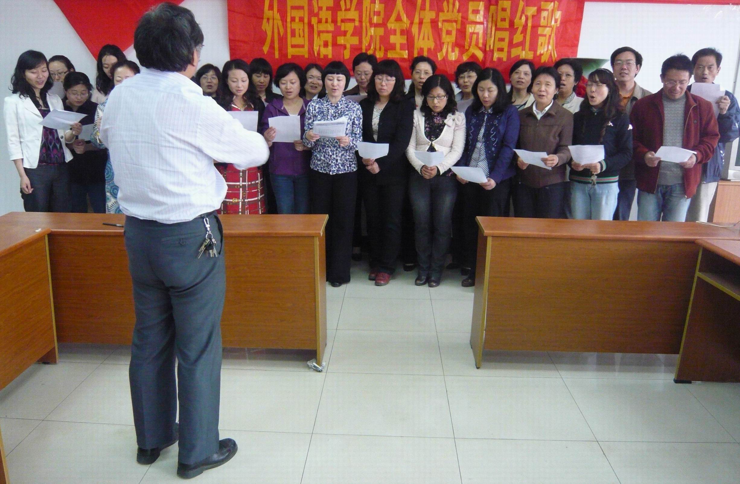 为了再度热烈庆祝中国共产党成立90周年,我院全体教职工党员在院长王克明教授的指挥下高唱《没有共产党就没有新中国》、《走进新时代》等歌曲。我院党员们以唱红歌的形式再一次表达了对党的无比崇敬和热爱之心,这同时也是我院全体教职工党员献给党90周岁的一份特殊礼物。