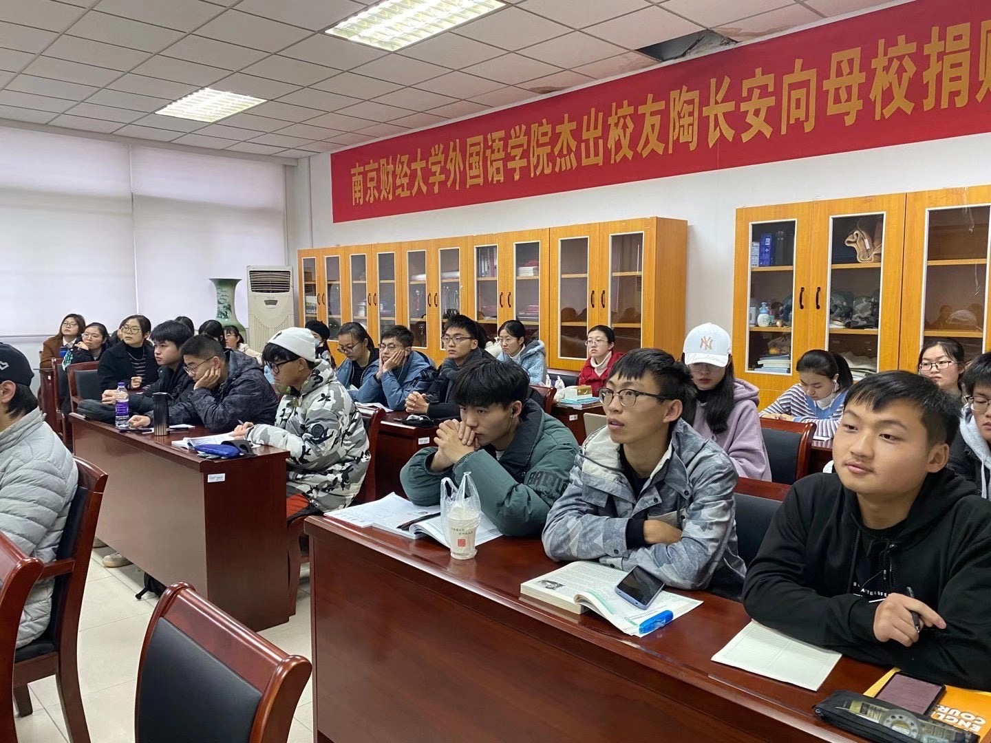 仪式结束后,陶长安校友给学院全院毕业生做题为“新时代青年的跨文化素养”的讲座,他指出新时代呼唤跨文化的汇聚融合与创新,既要“跨古今”,又要“跨中西”,凝聚起当代文化人的责任担当与思想力量。随后,陶长安校友全面介绍了蓝鲸培训学校有限公司的发展理念和前景,热切希望有新坚力量的加入,并针对学院应届毕业生开展专项招聘活动。