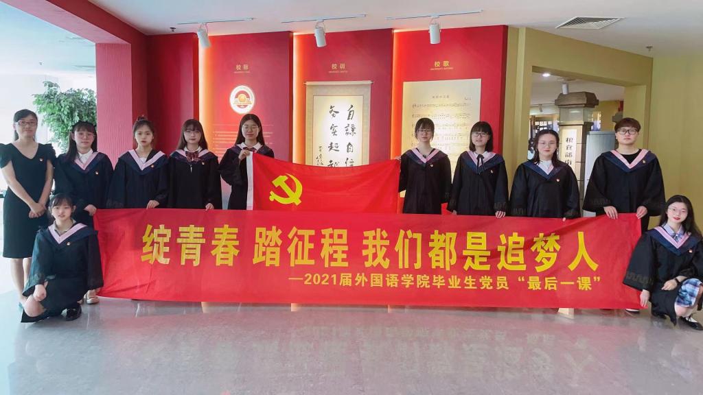 最后,两位毕业生党员代表分别从求知、奋斗、信念、奉献四个方面作了分享。毕业生党员陆颖讲述了自己四年来勤学笃行、潜心科研,立志远行求学,许党报国的成长经历;毕业生党员何叶雯分享了自己疫情期间勇挑防疫抗疫使命,未来立志投身国家建设大军的故事;几名毕业生党员纷纷向大家分享了入学以来大学生活的点点滴滴与四年来的拼搏与收获的成长,“那些年刷过的教学楼,那些年路过的大活礼堂,那些年奋斗的图书馆,再见的时候,情怀依旧,我们都是南财的追梦人”。优秀毕业生代表居文伟谈道,“爱祖国爱母校是不需要任何理由的笃定,作为一名即将毕业的学生党员,我要用情用心讲好校史,讲好校史中的红色故事,讲好学校转型发展的成绩,我要以这些可敬的人为榜样,学有所思、学有所悟、学有所得,自觉投入到为民服务、为国奉献的历史伟业中去!”
