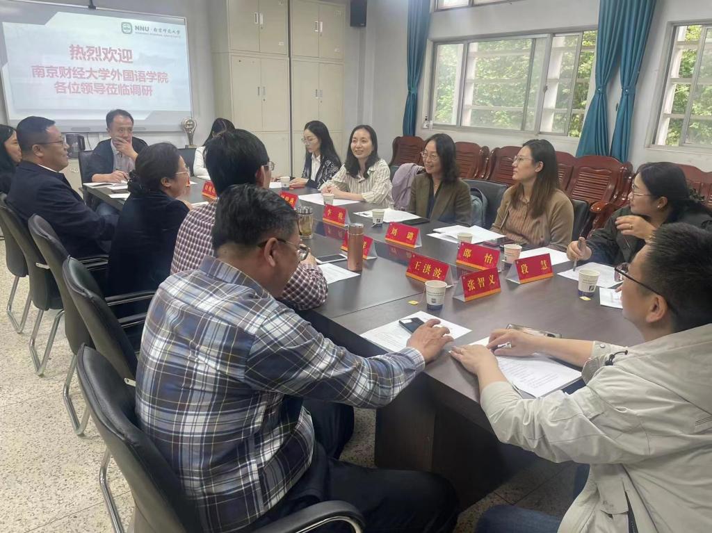 调研小组与南京师范大学william威廉中文党委书记孙绪敏、院长王永祥、副书记田军、副院长王洪波、副院长田朝霞、副院长张智义、专职组织员、人事秘书宋玮进行了调研座谈。座谈中双方就党建与业务的深度融合策略、高水平大学建设中的外语人担当、深化产学研合作促就业对策、辅导员能力提升战略、人才培养方案修订、国际交流以及财力建设、青年教师的学术能力培养等7个方面进行了深度交流。双方还就如何在学习贯彻习近平新时代中国特色社会主义思想主题教育中发挥外语优势展示外语担当进行了热烈研讨。