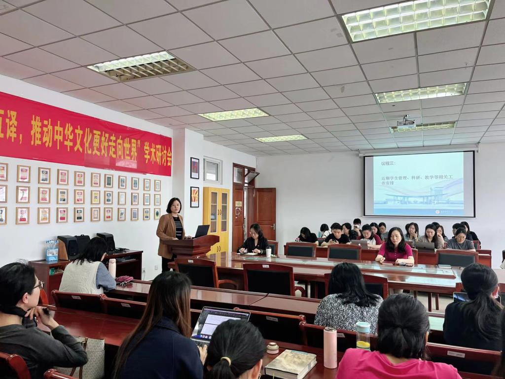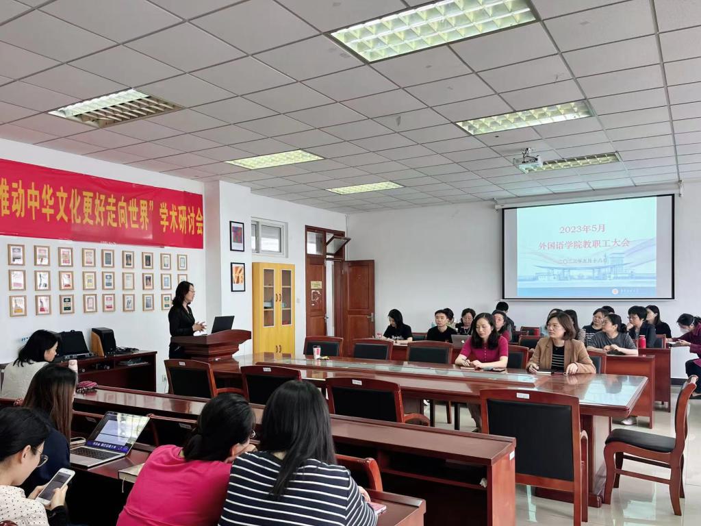英语系主任张晓甜向全院教师传达了本科生论文答辩、就业等教学工作情况,希望论文指导及时关注学生论文进展情况,明确论文答辩重要性,及时上传相关材料,呼吁全体教师与毕业生多交流,提供就业渠道、分享就业信息,促进毕业生就业工作。