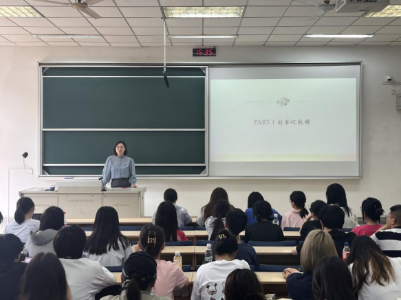 分享会上,刘璐副书记对我院2023年学生考研情况进行总结,对19级考研学子取得的优异成绩给予了高度肯定和由衷祝贺,也希望同学们对目前的考研、出国升学形势进行认真分析、精准定位、灵活对待,选择适合自己的赛道。