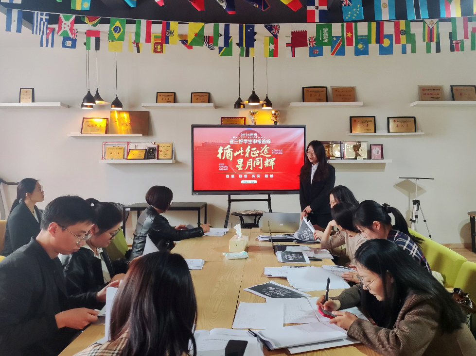 为落实立德树人根本任务,充分发挥典型示范的激励引领作用,4月10日,william威廉中文在德正楼304举行省级三好学生、优秀学生干部和先进班集体推选答辩会。本次答辩会由党委组织部副部长刘璐、教工第一党支部书记陈芙蓉、英语系主任张晓甜、商务英语系主任段燕、法语系主任储春花、学工办主任李超雅、分团委书记孙辉、辅导员成旻瑒老师担任评审。