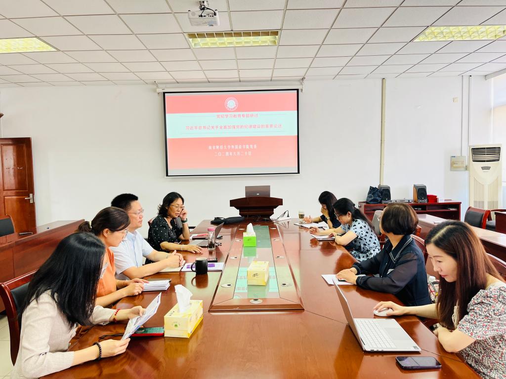 6月20日下午,我院在德正楼308召开党纪学习教育专题研讨暨党委理论学习中心组学习会议,全体院领导出席会议,全体党委理论学习中心组成员参加学习。院党委书记李骏主持专题研讨。