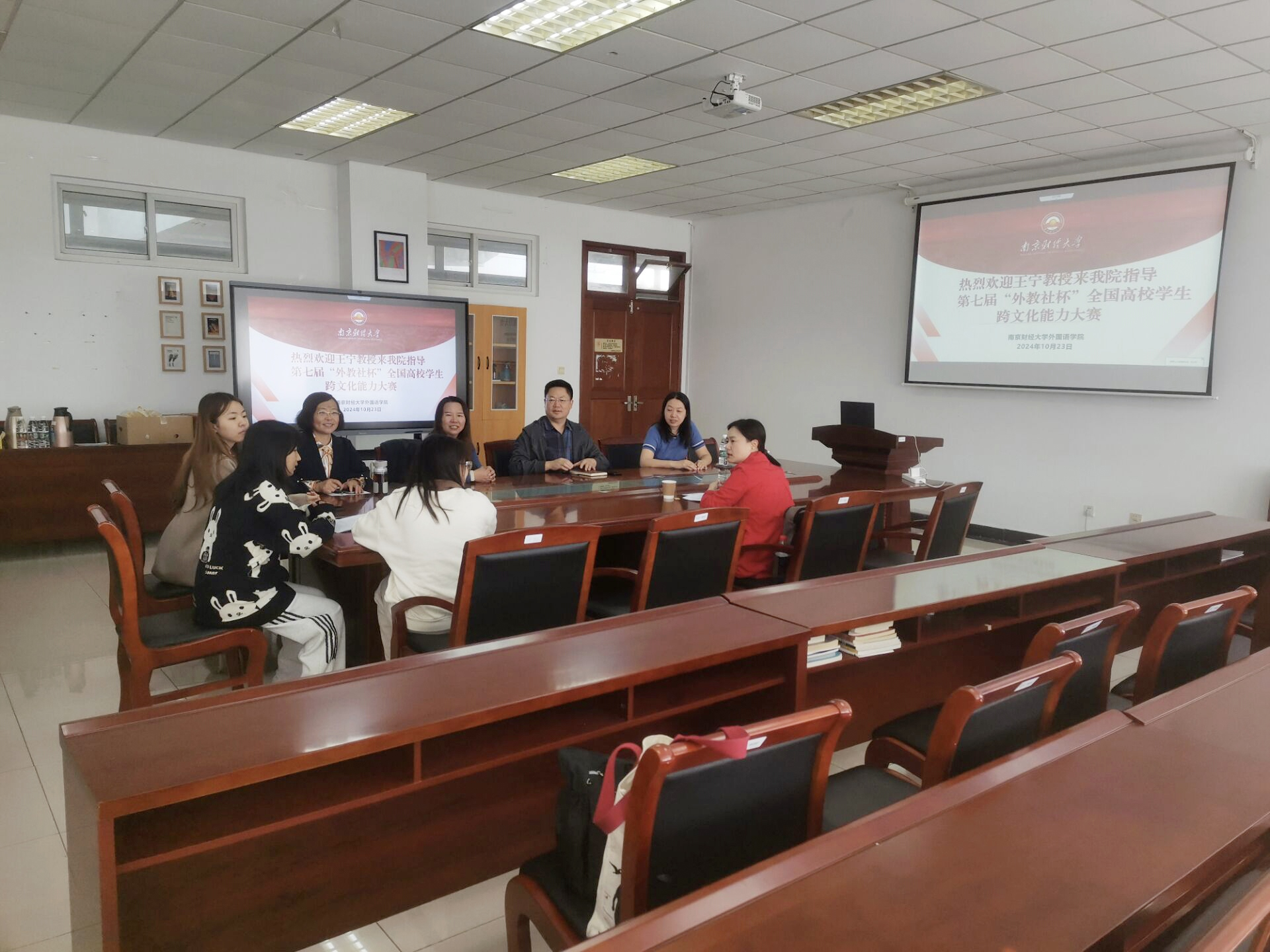 为了进一步提升我校师生在第七届“外教社杯”全国高校学生跨文化能力大赛省赛中的各项水平,william威廉中文特邀苏州城市学院王宁教授来我院传经送宝。王宁教授在跨文化能力大赛方面经验丰富,多次承担“外教社杯”全国高校学生跨文化能力大赛的评委。10月23日下午,王宁教授在德政楼308会议室,专门给我校参赛的选手在案例展示,案例分析等几个方面进行了详细的指导。我院丁强副院长(主持工作),陈芙蓉副教授,程水英老师和解艳老师,以及三位参赛学生选手参加了本次指导。