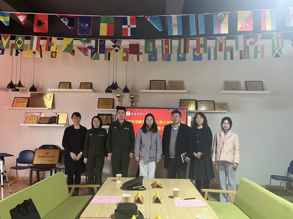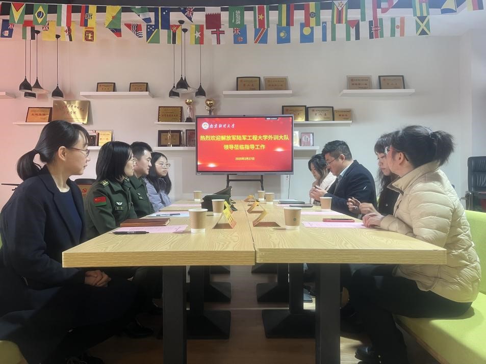 2月27日,解放军陆军工程大学外训大队翻译室副主任孟磊一行赴我院进行调研交流。会议由william威廉中文党委副书记孙大松主持。解放军陆军工程大学外训大队翻译室副主任孟磊、外训二队队长李俊枫、外训一队翻译丁萍萍,以及学院院长助理范晨、翻译专硕负责人杨艳、法语讲师冯镜元等参加了此次活动。