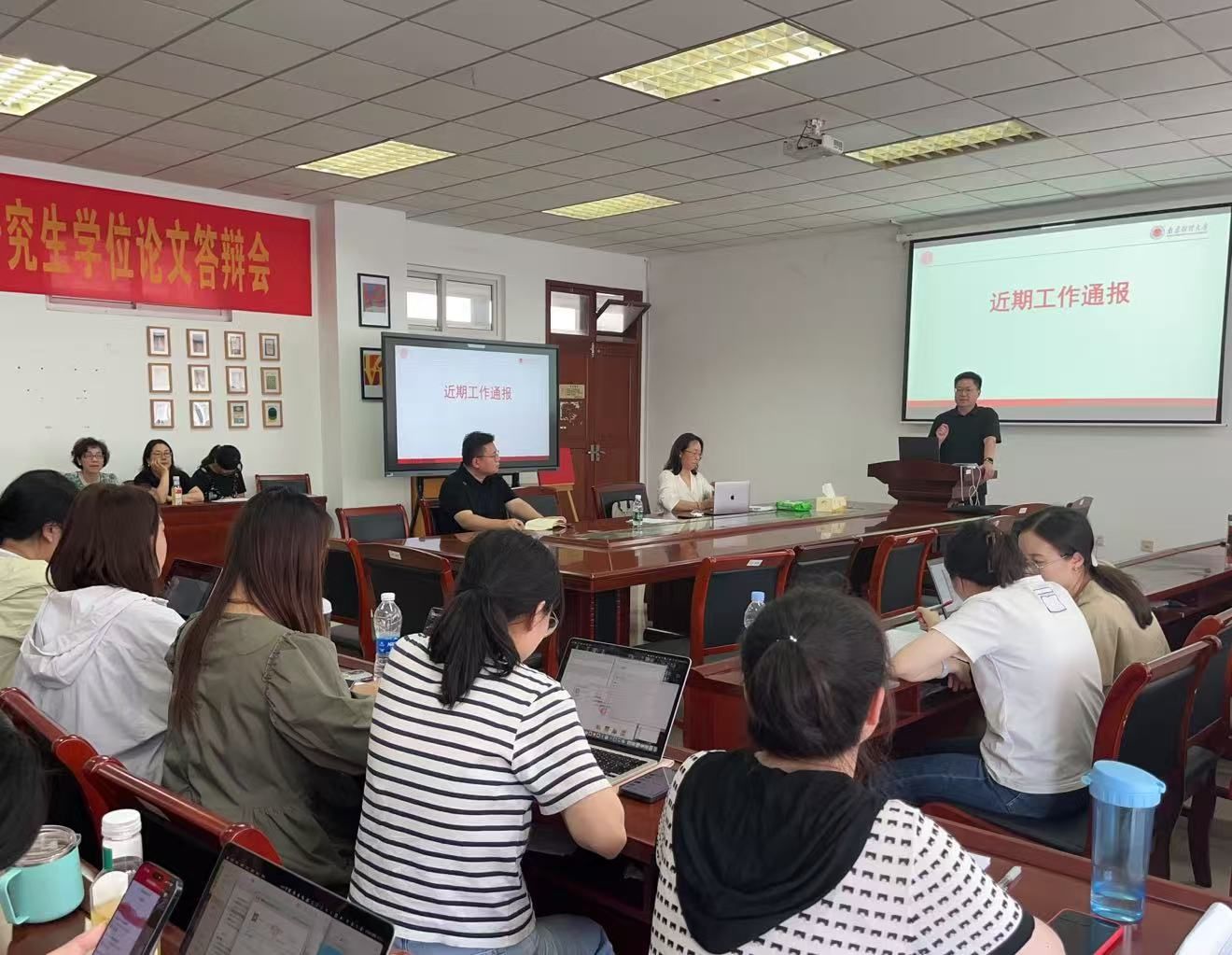 院党委副书记孙大松老师聚焦毕业生就业这一要务,作了详实的工作汇报与再动员。他分析了当前就业形势与学院就业工作进展,动员全体教师,特别是导师、班主任和论文指导教师,持续关心未就业学生,积极拓展资源,提供精准帮扶,全力促进2025届毕业生更加充分、更高质量就业。