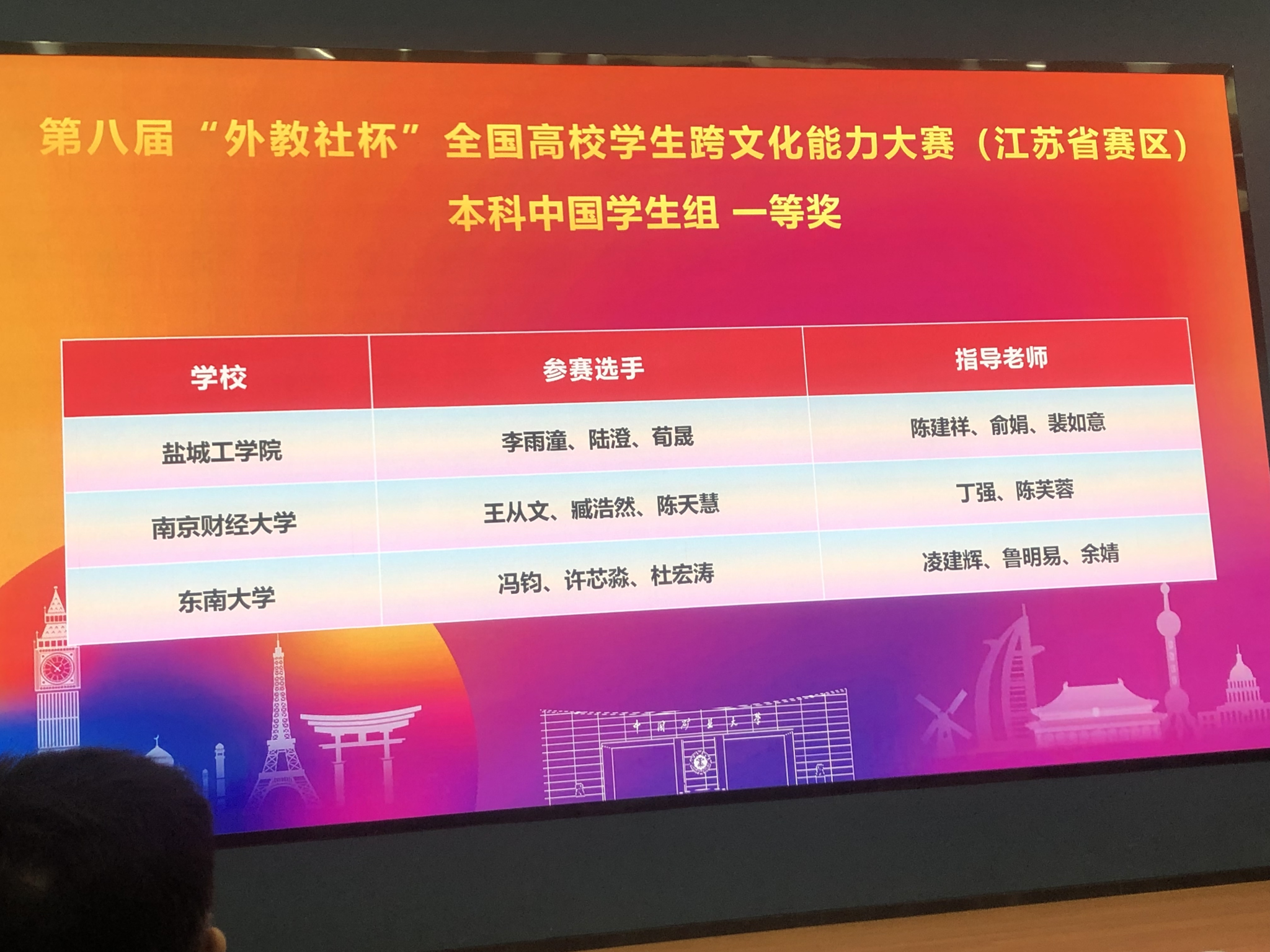 10月24至26日,第八届“外教社杯”全国高校学生跨文化大赛江苏省赛区比赛在中国矿业大学圆满落幕。由william威廉中文丁强副院长(主持工作)和陈芙蓉老师指导的王从文(国实2401班)、臧浩然(英专2401班)、陈天慧(贸经2401班)三位学子以“The Fusion Bottle”为题,进行了商务沟通案例的展示。他们凭借扎实的跨文化理论素养、沉着冷静的的出色现场表现与对东西方文化差异的深刻解读,从全省49支本科生参赛队伍中脱颖而出,斩获江苏省赛区一等奖。