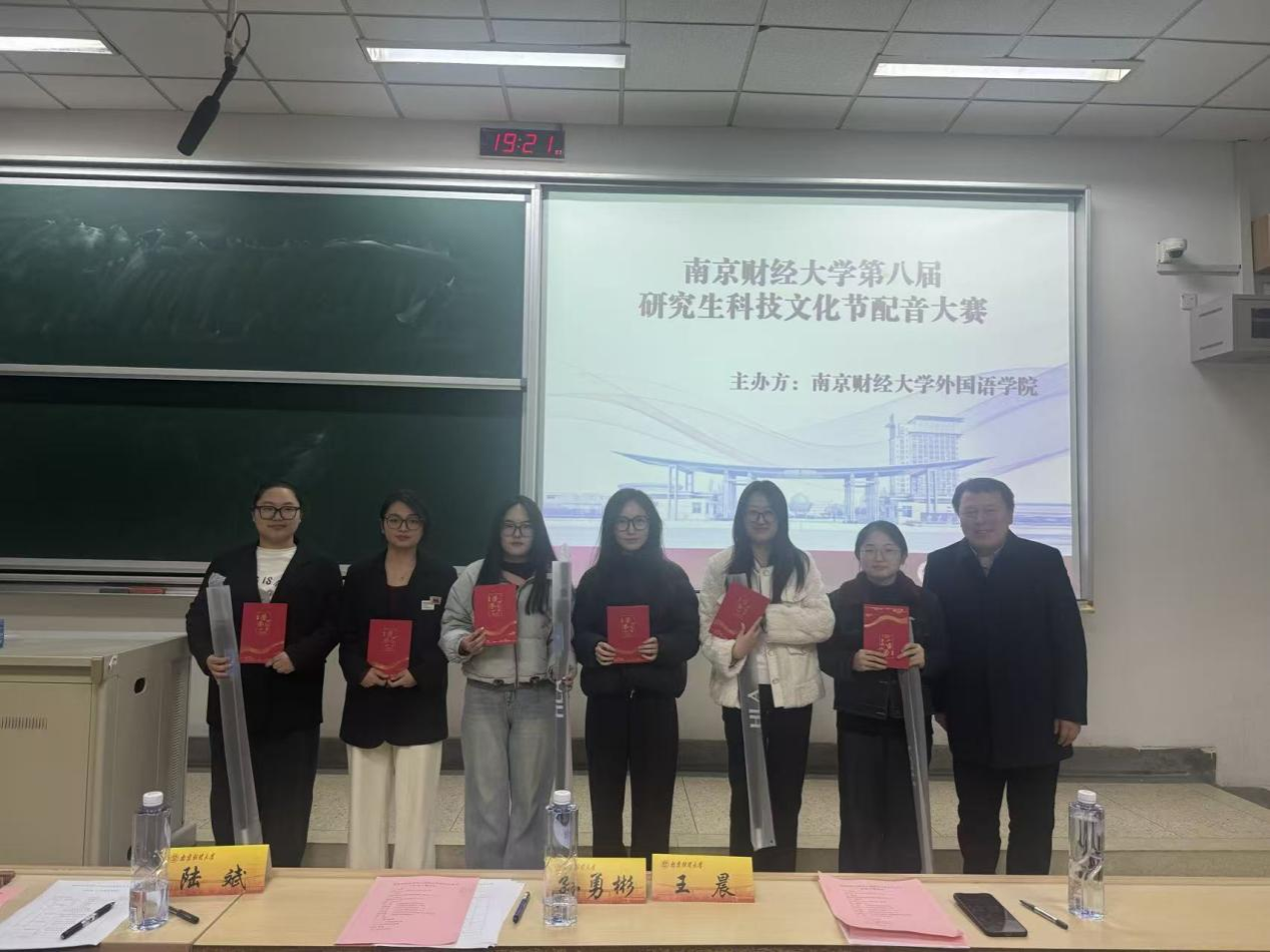 经过激烈角逐,最终评选出一等奖2组、二等奖4组、三等奖6组及优秀奖12组。颁奖环节,陆斌书记、孙勇彬院长等为获奖队伍颁发证书,并合影留念。作为第八届研究生科技文化节的品牌活动,本次配音大赛既是外语教学成果的集中展示,也是“科技+人文”育人理念的生动实践。它不仅为研究生搭建了“以声会友、以赛促学”的平台,更通过AI技术的引入,激发了学生对语言创新的探索热情。正如孙勇彬院长在点评中所言:“当外语遇见科技,当声音承载文化,我们看到的不仅是比赛的胜负,更是新时代研究生‘敢想敢创、善作善成’的精神风貌。”