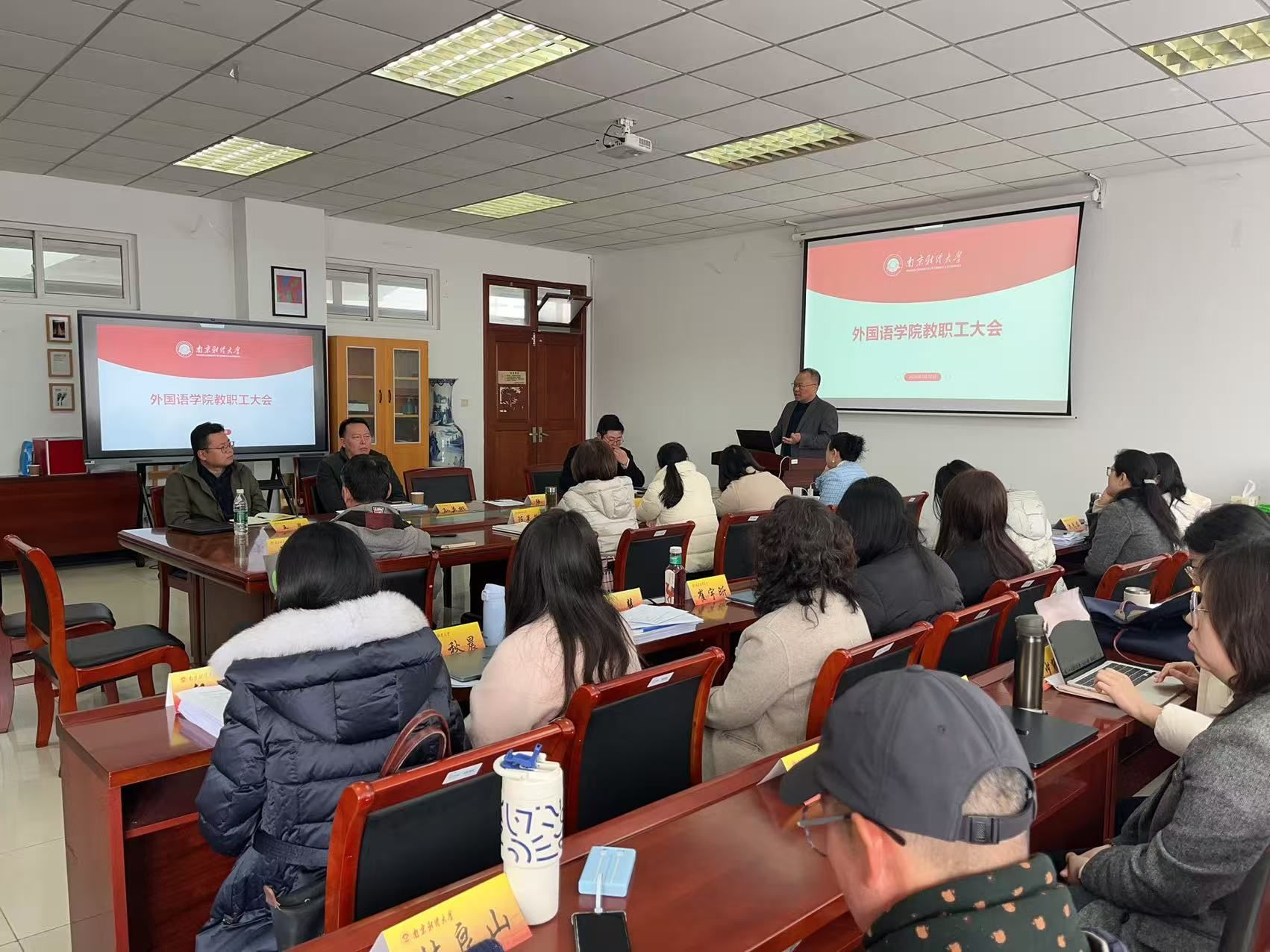 第三环节,孙勇彬院长通报本学期工作思路。他指出,2026年是学院深化改革、提升内涵的重要一年。围绕学校整体发展战略,本年度学院将重点做好以下几个方面的工作:第一,坚持立德树人,持续提升人才培养质量;第二,加强学科建设,推动科研水平不断提升;第三,加强师资队伍建设,激发教师发展活力;第四,深化国际交流合作,提升学院国际化水平;第五,加强学院治理能力建设,营造团结奋进的良好氛围。