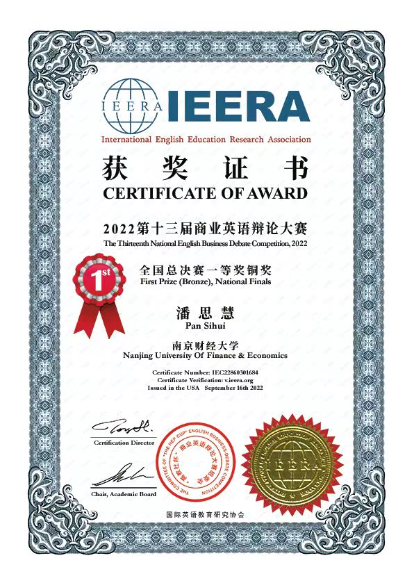 近日,第十三届“高教社杯”商业英语辩论大赛暨全国高校创新创业系列赛圆满落幕。经过激烈比拼,我院“White Queen”辩队荣获第十三届“高教社杯”商业英语辩论大赛全国总决赛一等奖铜奖,“Die for Sound”辩队荣获第十三届“高教社杯”商业英语辩论大赛全国总决赛三等奖。我院肖辉教授荣获本届为商业英语辩论大赛“最佳指导教师”称号。