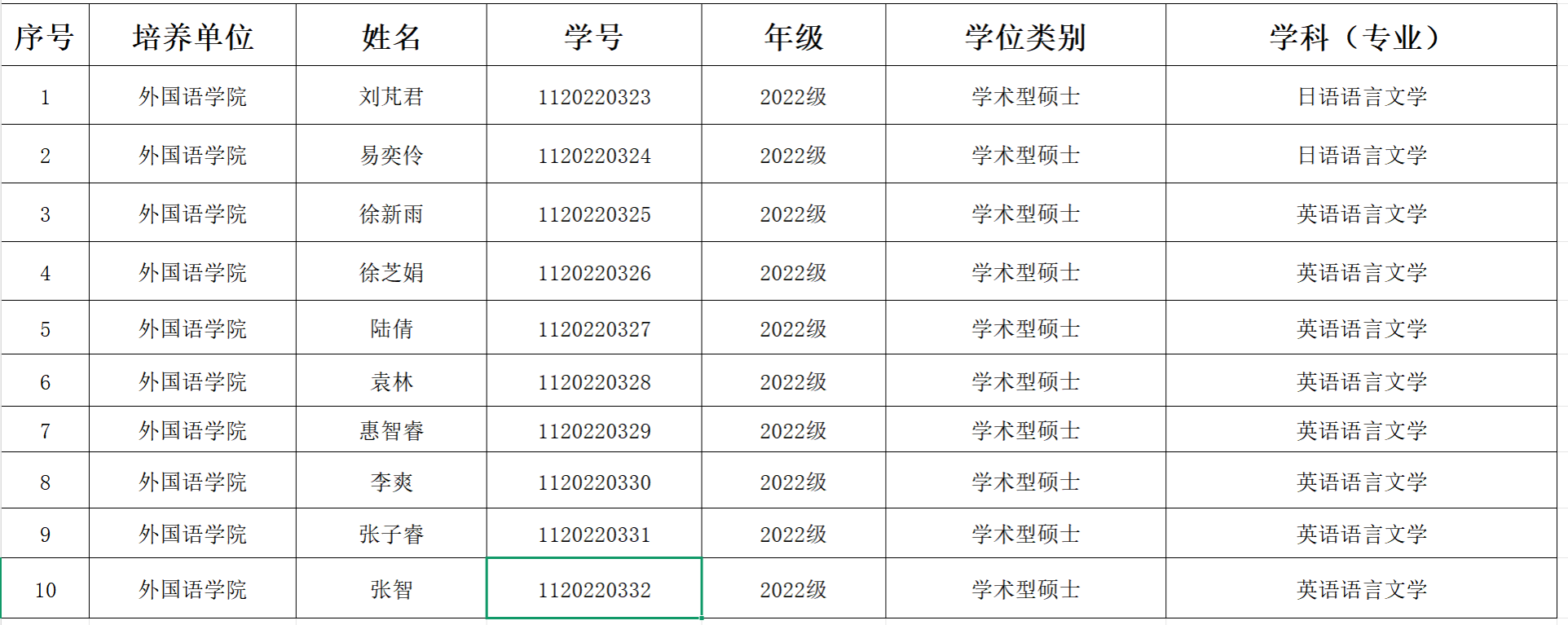 根据《WilliamHill中文硕士研究生授予学位工作细则》规定,经william威廉中文学位委员会审核,同意授予2022级刘芃君等10位同学硕士学位,具体名单如下: