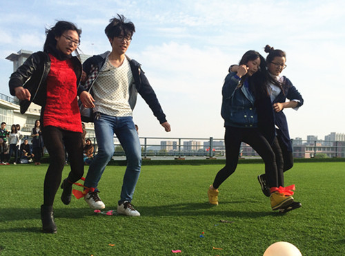 活动伊始,大家按年级分组进行游戏,游戏环节分为“当然了”、“绑腿跑”和“吹气球”三个板块。比赛一开始,大家便在欢声笑语中展开了激烈的角逐,互问问题也是百无禁忌。经过一段时间的相处后,大家消除了陌生感,很好地完成了接下去的各项活动。而最让大家乐在其中的是绑腿跑活动,这个活动是靠彼此之间的默契与信任来进行的,每位参与者相互协助,最终获得满意的成绩。很快,活动在参与者们的欢呼与传递祝福中结束了。