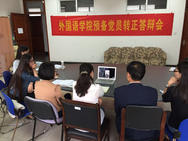 5月27日上午,我院本科生党支部预备党员转正答辩会如期进行,而此批申请转正的英语1201班宋瑶同学于去年5月加入中国共产党,9月参与学校的3+1项目前往英国南安普顿大学就读,无法到场参加答辩。经过讨论,学院党委和本科生党支部决定采取视频答辩的方式为宋瑶同学开展预备党员转正答辩会。