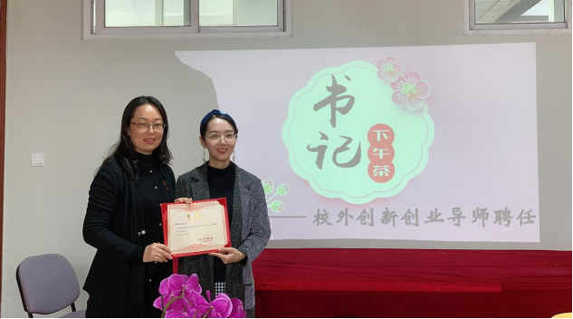 李骏书记回忆和石贤第一次见面的场景,她身着一身民族服饰,亭亭玉立落落大方的站在国奖答辩的舞台上,瞬间就抓住在场所有人的眼球。李书记更是亲身支持民族文化传承和工艺品革新事业,她表示希望与从江县卧松云文化发展有限公司建立校企合作,带着学生们一起到贵州,挽救侗族手工艺,助农脱贫。她以石贤为例,告诫在场的学生,要认认真真做实践,踏踏实实学知识,发掘更多与专业知识相契合的领域,学以致用的同时拓宽人生的广度,提高人生的下限。最后,学院特别聘请石贤为学院校外创新创业导师,希望学生们可以以她为榜样,找准人生的定位,实现自己的人生价值。