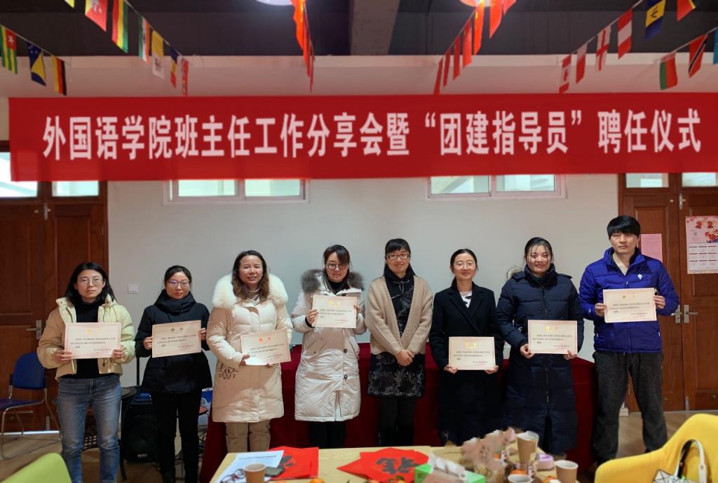 为深入了解班主任工作开展情况,交流学生管理经验,同时加强基层团支部建设,1月13日下午,学院班主任工作分享会暨“团建指导员”聘任仪式在德正楼304举行。学院党委副书记刘英华、学院全体班主任及“团建指导员”参加此次活动。活动由学院党委副书记刘英华主持。