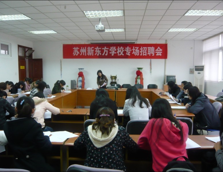2011年11月8日下午一点半苏州新东方学校来我院进行专场招聘,招聘会在我院会议室专三308举行。苏州新东方学校是隶属于上海新东方学校的一所外语培训学校,依托新东方的强势教育品牌,凭借上海新东方的成功办学经验和在华东地区的广泛影响在短期内成为苏州英语培训行业的领头羊。“教育影响时代,教育成就未来”一直是新东方学校的口号。