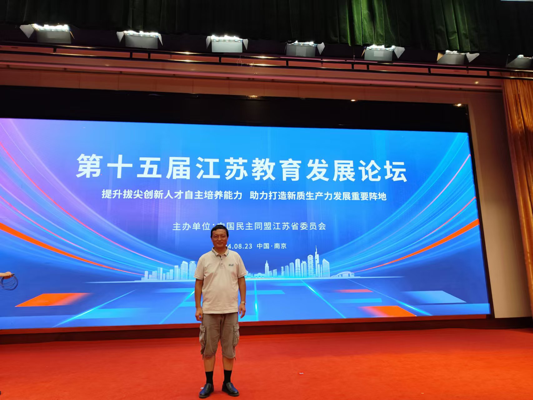 2024年8月23日,由民盟江苏省委会主办的第十五届江苏教育发展论坛在南京举行,我院盟员游思淳老师应邀参会。全国政协常委曹卫星、副省长赵岩、民盟省委会主委胡刚等领导出席论坛并发表讲话。论坛围绕着“提升拔尖创新人才自主培养能力,助力打造新质生产力发展重要阵地”的主题展开。