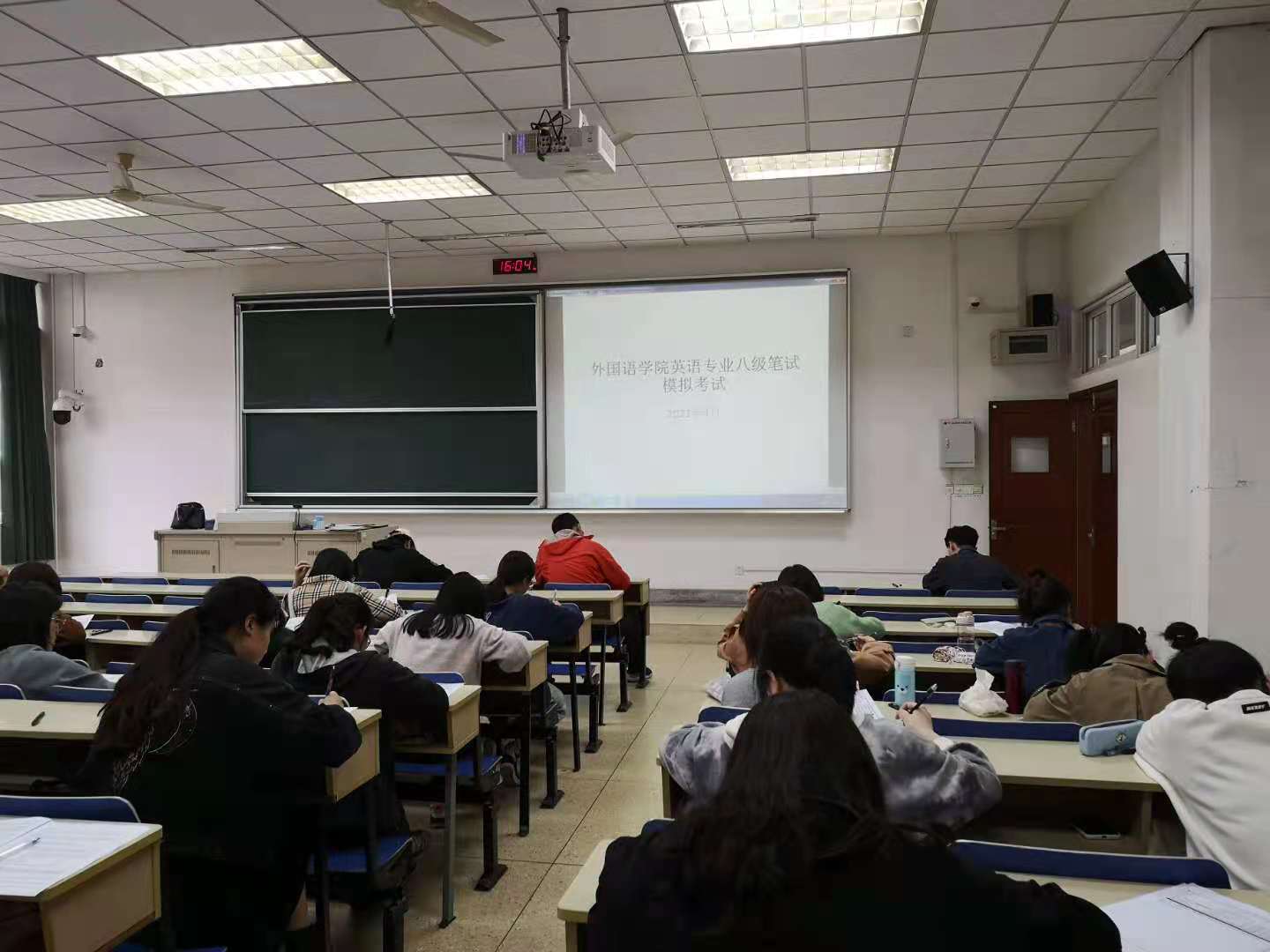 2021年4月22日13:30-16:30,在德业楼113我院举办了英语专业八级笔试(TEM8)模拟考试。我院2017级英语专业学生参加了模拟考试。