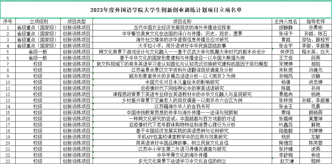 根据《省教育厅办公室关于做好2023年大学生创新创业训练计划立项工作的通知》(苏教办高函〔2023〕7号)和《关于组织申报2023年度WilliamHill中文大学生创新创业训练计划项目的通知》(南财教字〔2023〕9号)文件要求,经学生申报、学院初评、学校组织专家评审,共评审出322项大学生创新训练计划立项项目,其中拟推荐参评省级重点项目(即国家级项目)65项、省级一般项目70项,拟立项校级项目187项。期中我院获推荐省级大学生创新训练计划重点项目4项、创新训练计划一般项目2项、校级项目17项(见附件)。