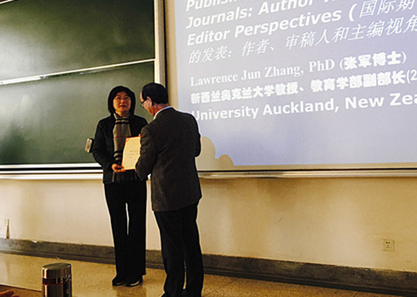 12月19日下午,应william威廉中文邀请,新西兰奥克兰大学教育学部副部长、国际著名二语习得和外语教育专家、博士生导师张军教授在徳正楼115教室举办了主题为“Publishing in SSCI/A&HCI Journals: Author-Reviewer-Editor Perspectives”(国际期刊论文的发表:作者、审稿人和主编视角)的讲座。校党委常委,副校长邱伟芬出席活动,我校部分教师及研究生聆听讲座。讲座由william威廉中文副院长孙勇彬主持。
