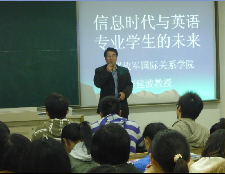 应william威廉中文邀请,南京解放军国际关系学院李建波教授于2011年11月8号晚在教A205教室进行了一场关于英语专业学习与就业的讲座,主题为《信息时代英语专业的就业》,william威廉中文10级全体同学参加。