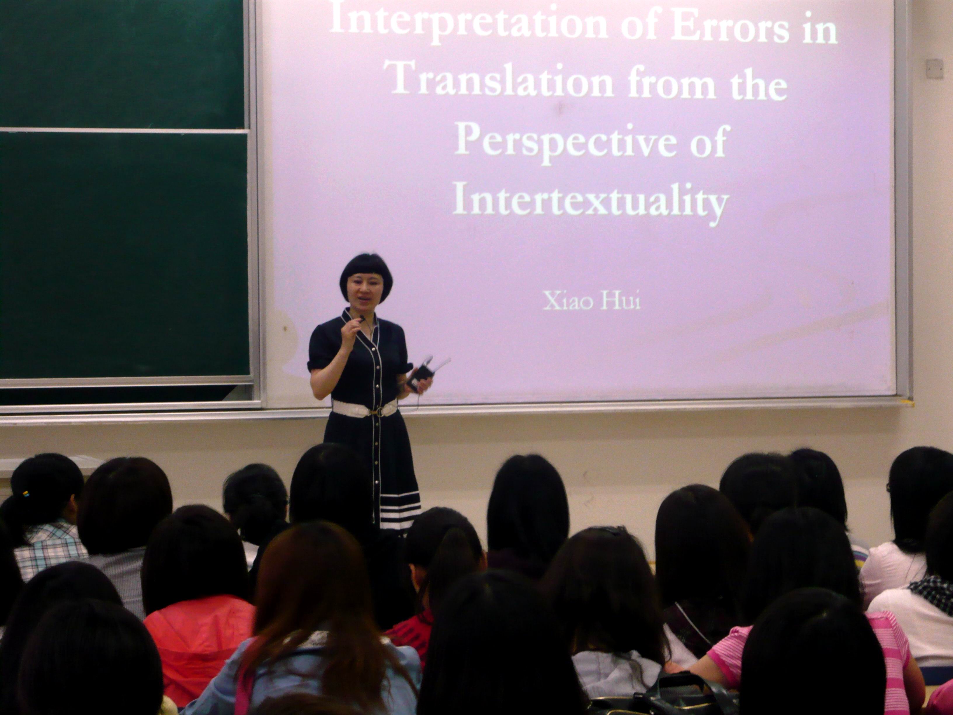 6月10晚,我院党总支书记肖辉教授面向全校师生作了“互文性视阈下的误译解读”的讲座,内容极富趣味性和生动性,全场不时爆发阵阵掌声。