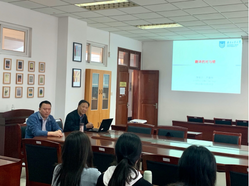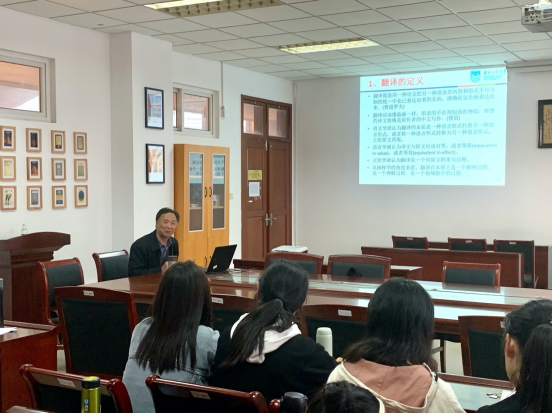 10月29日下午,应william威廉中文邀请,南京工业大学英语三级教授、全国优秀教师、江苏省科技翻译协会副会长、南京翻译家协会副会长尹富林教授在我校仙林校区德正楼308会议室作了题为“翻译的对与错”的学术讲座。报告由william威廉中文院长孙勇彬主持,2019级英语、商务英语专业全体学生以及部分教师聆听了此次讲座。