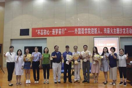 9月9日晚,我院在图书馆四楼世界之窗举办了“不忘初心•逐梦前行”——迎新人、传薪火主题沙龙活动。院党委书记刘浩、院长助理储春花出席了活动。青年教师代表齐梦菲、杨艳、洪忠婷、段燕,辅导员蒋颖异、黄婕及学院全体2019级研究生、本科生参加了活动。活动由院党委副书记刘英华主持。